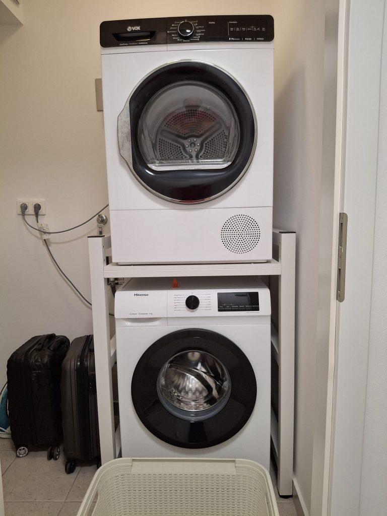 Kuhinja je v celoti opremljena z jedilnim priborom in opremo za kuhanje za do 6 pogrinjkov. Vsebuje indukcijsko kuhalno ploščo, električno pečico, mikrovalovno pečico, pomivalni in pralni stroj. Jedilnica obsega mizo s 6 stoli. V pralnici sta pralni in sušilni stroj. Stanovanje je klimatizirano.